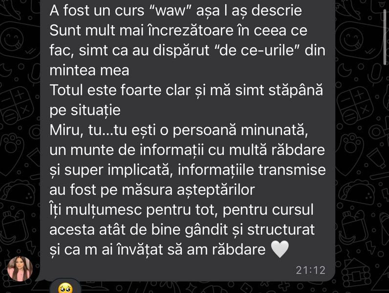 Alături de 10 demonstrații explicative, îți vei relua locul la cursul de bază, apoi vei merge la perfecționare și în final – vei preda în fața unei grupe.